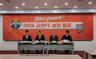 강원FC가 "강하고 원대하게"란 캐치프레이즈 아래 2026년 비전 발표를 통해 방향과 목표를 제시했다.강원FC 구단주인 김진태 강원도지사와 김병지 대표이사는 25일 오전 10시 …