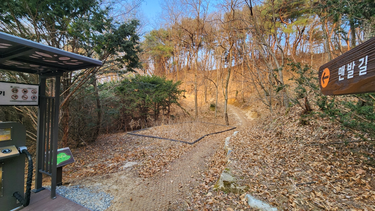 맨발길이란 안내판을 따라 야자매트가 깔린 200여 미터를 걸어가자 흙 길이 보였다. 이 흙 길은 이번에 새로 조성된 맨발길이 아닌 예전에 설치된 등산로였다. 새로 조성된 맨발길을 어떻게 만들었을까 하고 궁금한 마음에 많은 시민들과 맨발 전문가들이 주변을 한참 찾아보고 올랐지만 새로 조성된 맨발길은 보이지 않았고 아예 만들지도 않았음을 확인할 수 있었다.
