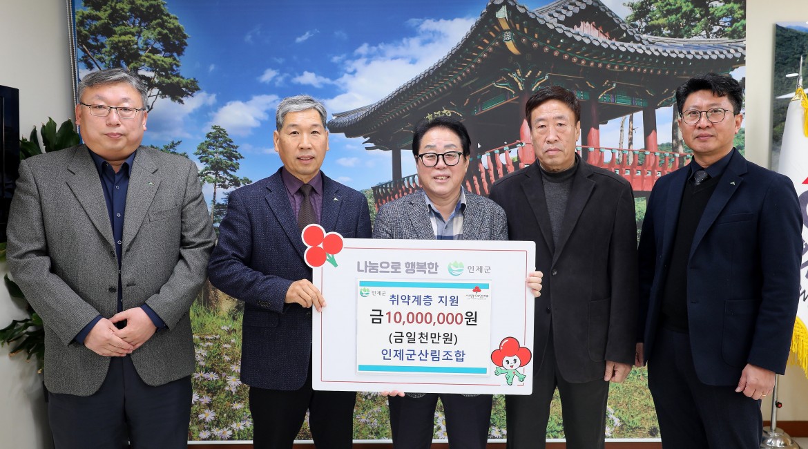인제군산림조합, 인제군에 성금·장학금 기탁 춘천뉴스 (112.♡.64.42) 0 01.12 인제군산림조합이 지역사회 기부문화 확산에 앞장섰다. 인제군산림조합은12일 인제군청을 방문해 어려운 이웃을 위해 사용해 달라며 성금 1,000만원과 장학금 2,000만원을 기탁했다.전덕재 조합장은 “도움이 필요한 이웃에게 따듯함이 잘 전달되길 바라며, 앞으로도 지역사회에 나눔문화가 널리 피지길 바란다”고 말했다.류성목
