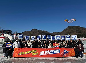 - 국제스케이트장 대체부지 춘천 유치 공감대 확산 총력- 얼음나라화천 산천어축제서 현장 홍보, 모바일 서명 잇단 호응- 국제스케이트장 공모 재개까지 캠페인 지속 추진 계획춘천시체육…