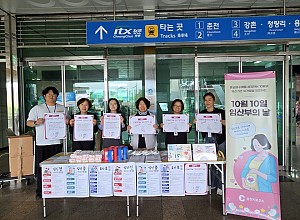 춘천시보건소가 10일 인구보건복지협회 강원지회와 함께 남춘천역에서 제20회 임산부의 날(10월 10일)을 맞아 임산부 배려·보호 캠페인을 개최했다. 이날 캠페인은 임산부에 대한 사…