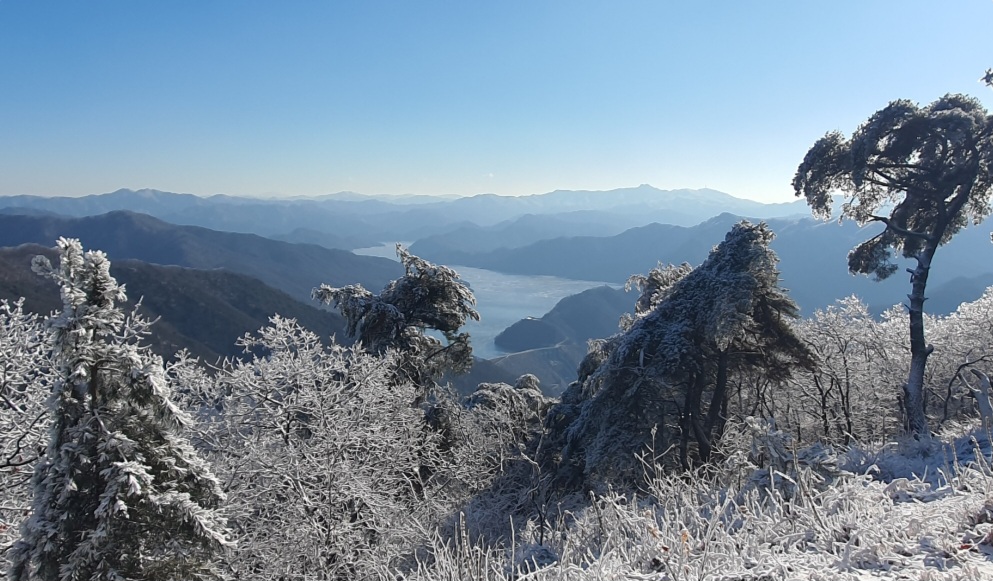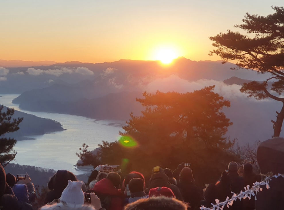 △▽ 마적산 정상에서 바라본 소양호와 일출(춘천뉴스 DB)