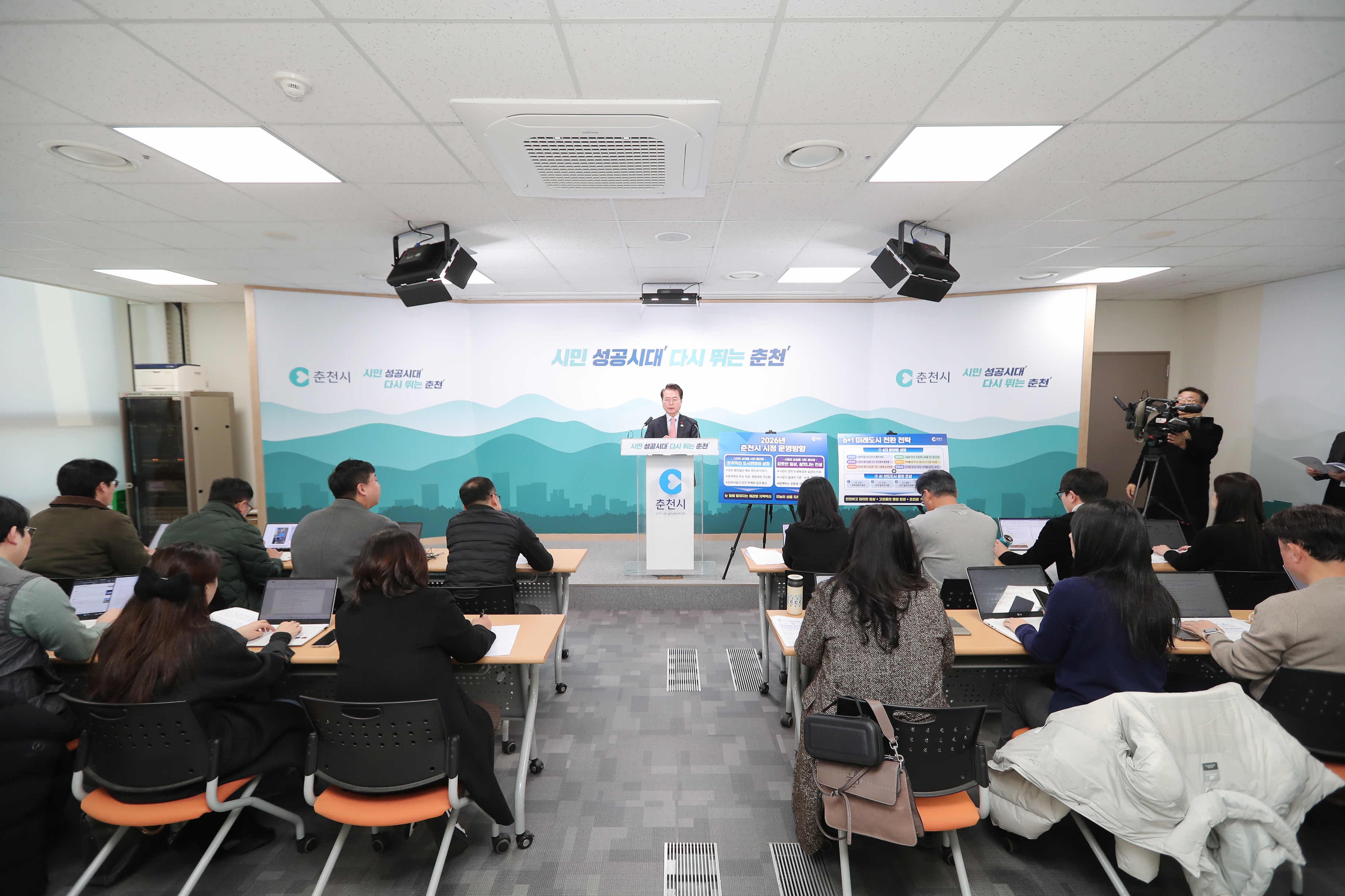 이를 토대로 춘천시는 2026년 시정 운영의 큰 방향으로 ‘6+1 미래도시 전환 전략’을 제시했다. △교육 △민생경제·첨단산업 △문화·관광 △도시건설 △보건·복지 △환경·농업 6대 분야를 중심으로 △AI 선도도시 조성을 위한 대전환 전략을 더해 도시 경쟁력을 높인다는 구상이다.