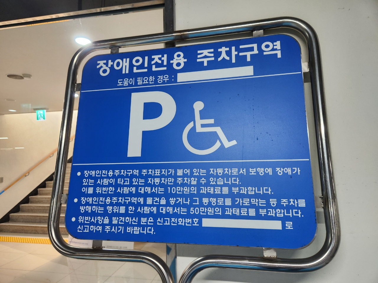 - 장애인 주차장 이용시 도움을 청하려 해도 연락처 없어