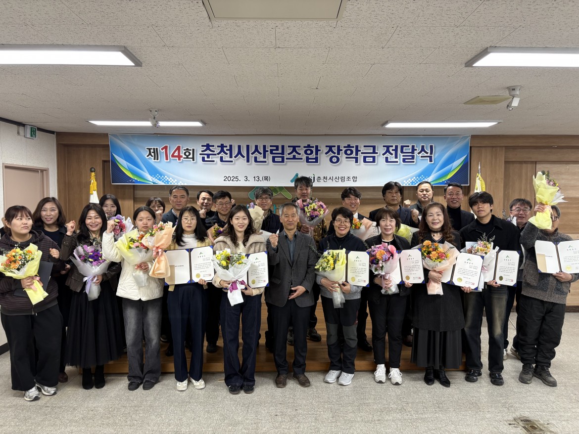 춘천시산림조합이 3월 13일(목) 오전 11시 춘천시산림조합 4층 대회의실에서 “제14회 춘천시산림조합 장학금 전달식”을 개최했다.
