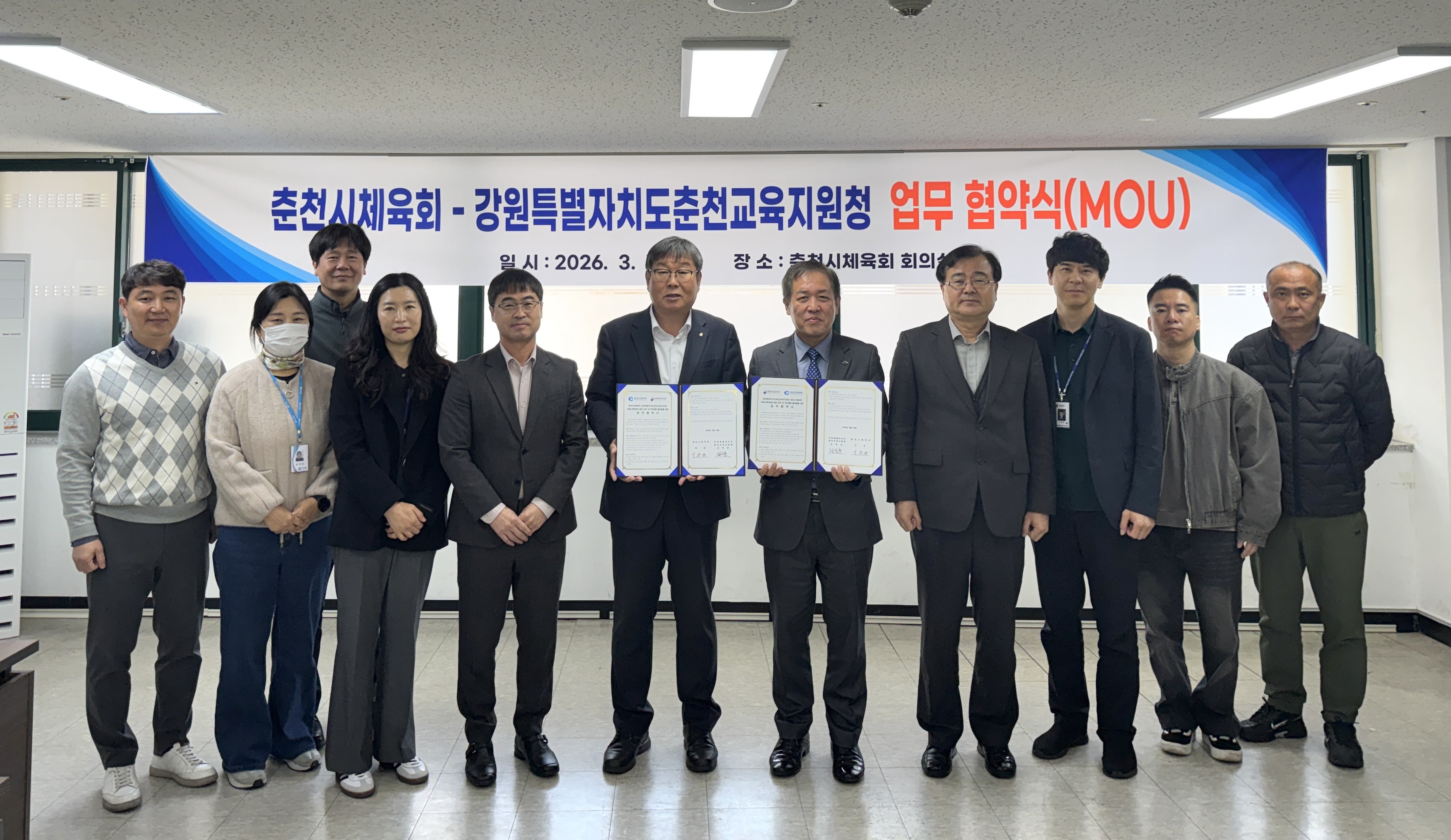 이강균 춘천시체육회장은 “이번 협약은 체육계와 교육계가 함께 협력해 국제스케이트장 춘천 유치 공감대를 확산하고 학생 중심 체육활동 활성화를 통해 지역 체육 발전 기반을 마련하는 계기가 될 것”이라고 말했다.