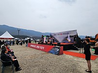 △ 착공식에 참여한 김진태 도지사(위)와 한기호의원(아래)이 인사를 하고 있다- 춘천시 동내면 고은리 일원, 주민과 공무원 등 500 여명 참석- 한기호 국회의원, 홍천군수, 속초…