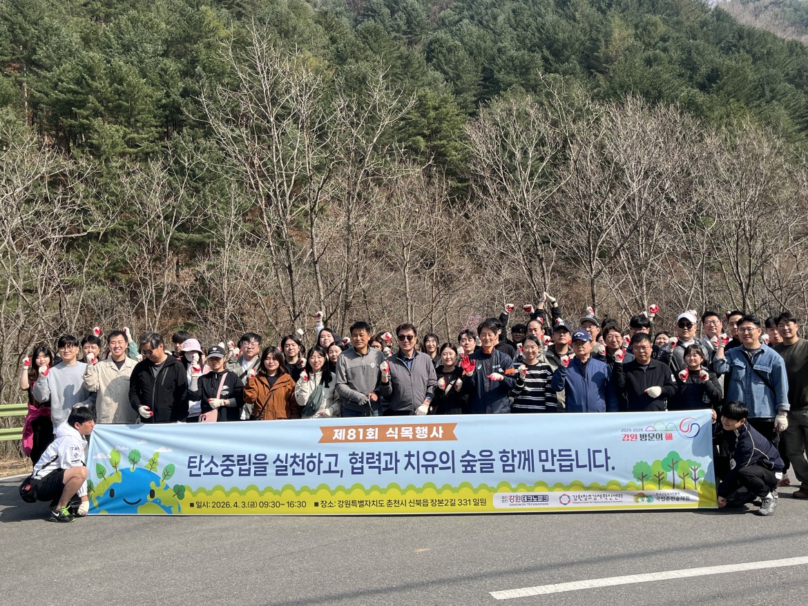 강원테크노파크, ESG경영·탄소중립 실천 위한 제81회 식목행사 개최 춘천뉴스 0 0 0 04.03 강원테크노파크가, 4월 3일 국립숲체원 일원에서 ESG경영·탄소중립 실천 위한 제81회 식목행사를 개최했다.김현진 0 0