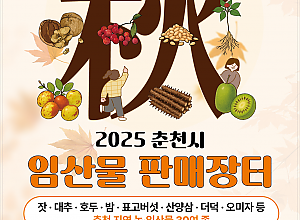 춘천시(시장 육동한) 주최하고 춘천시산림조합(조합장 임동일)이 주관한 ‘2025 춘천시 임산물 판매장터’가 지난 25~26일 이틀간 춘천시산림조합 나무전시판매장에서 성황리에 막을 …