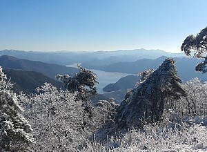 △▽ 마적산 정상에서 바라본 소양호와 일출(춘천뉴스 DB)맨발걷기를 비롯해 트레킹, 산행, 슬로우조깅, 맨발캠핑 등 다양한 걷기를 통해 시민의 건강 증진을 도모하고 있는 춘천맨발…