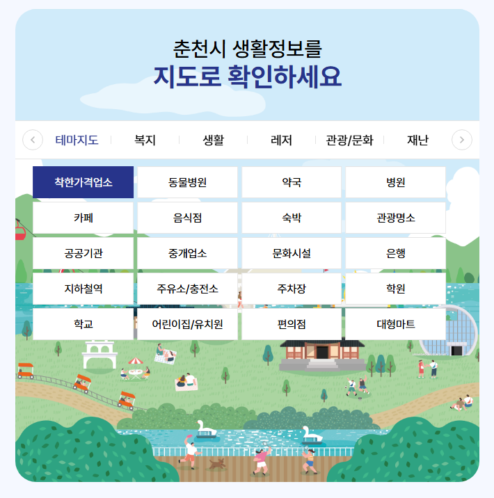 춘천시. 생활안내지도를 활용한 착한가격업소 확인 서비스 제공