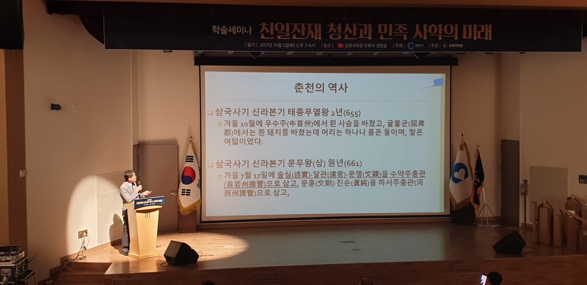 강원도국학기공시범단의 기공 시연을 시작으로 열린 학술세미나에서는 ‘친일잔재 청산과 민족사학의 미래’를 주제로 엄찬호 강원대 사학과 교수가 기조 강연을, 임찬경 인하대 연구교수, 오동철 (사)춘천역사문화연구회 사무국장, 우대한 (사)국학원 학술연구 이사가 친일잔재 청산에 대한 주제발표를 했다.
