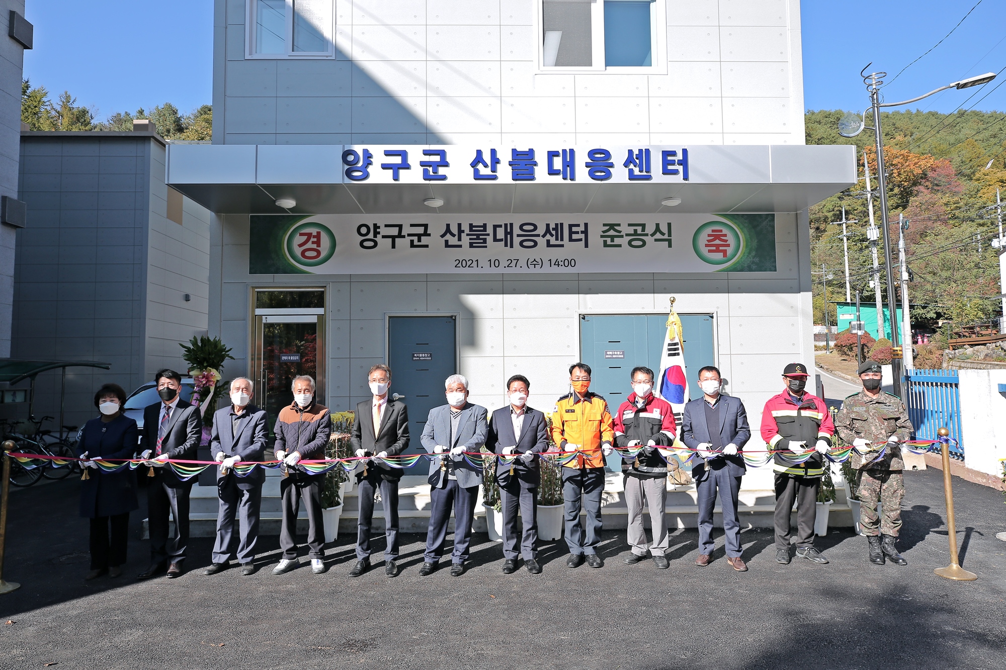 산불대응체계 구축 강화와 산불진화대의 근무환경 개선을 위한 양구군 산불대응센터 준공식이 27일 오후 양구군청 별관 옆 부지에 신축한 산불대응센터에서 열렸다.